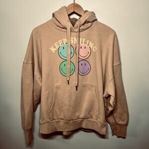 American Eagle Hoodie Seriously Huggable Fleece Lined Hood Keep Smiling Tan S