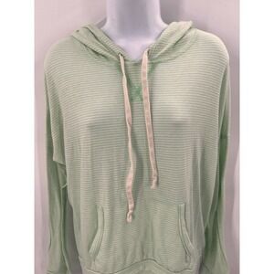 American Eagle Hoodie Sweater Womens Size XS/S Knit Pullover Green Ivory Stripe