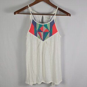 American Eagle Ivory Tunic Top S Embroidered Boho Festival Sleeveless