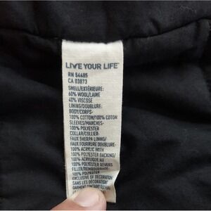 Nice overall condition, no holes or stains noted. Wool blend jacket with quilted inner lining and faux fur at the neck. Please look at all the pictures for a more detailed description.