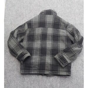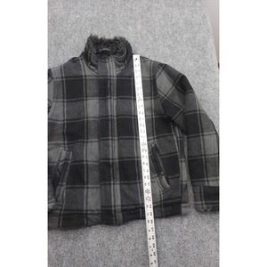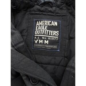 American Eagle Jacket Coat Medium Black Gray Plaid Full Zip Wool Quilted Lined