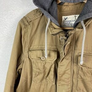 American Eagle Jacket Mens XXL Tan Utility Hooded Military Heavy Y2K Outdoor