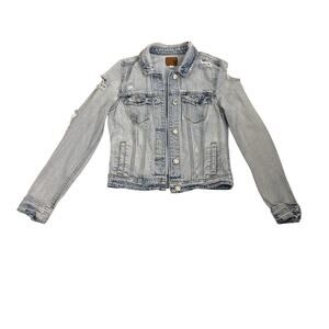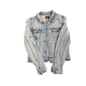 American Eagle Jean Jacket Blue Distressed Denim Button Down Size Women's Small