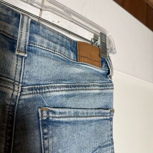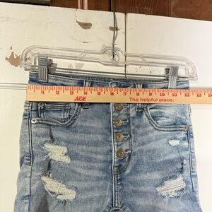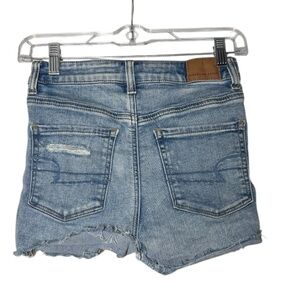 American Eagle Jean Shorts Blue Next Level Stretch Size 0 Rips Button Fly Denim