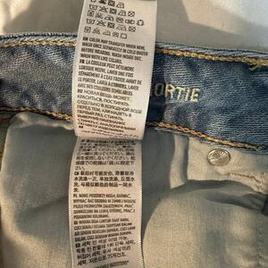 Step into summer with these on-trend American Eagle Jean Shorts in Size 4. Known for their comfortable fit and durable construction, these 'Shortie' style shorts are perfect for those warm weather days. The shorts are designed with a classic light blue wash that effortlessly pairs with a variety of tops and shoes for versatile styling options.