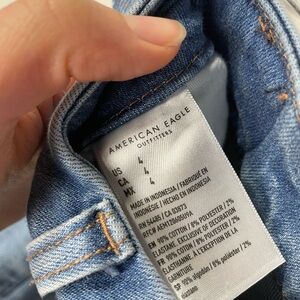 American Eagle blue jean skirt with fashionable rips! Has pockets and a stretchy waistband! In excellent condition! Size 4 women’s!