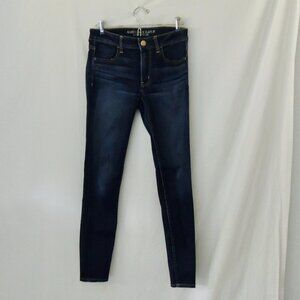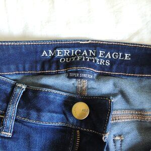 Super stretchy and comfy jeggings from American Eagle. Distressed on the pockets and at the bottom as pictured. Barely worn and in excellent condition. Size 6 and fits true to size. Waist is 15" across the back, front rise is 9", inseam is 29".