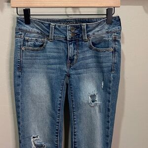 American Eagle Jeans. Size 00 regular. See pics for measurements. Style artist crop. 23” from crotch to bottom. Distressed. Stretch.