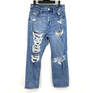 American Eagle Jeans Womens 10 Regular Highest Rise 90s Boyfriend Distressed Rip. Great pre-owned condition. Center front zipper and button closure. Front/back pockets.