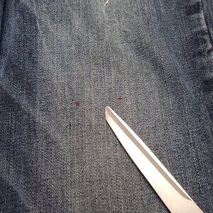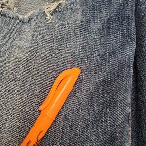 Good preowned condition. Thick denim with factory distressing, made to last. Both legs have very small pink spots on them, possibly marker?, shown in photos. Clean, smoke free home.
