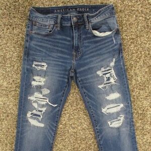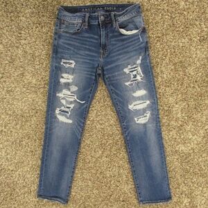 American Eagle Jeans Men's 31x30 Dark Wash Slim Straight Airflex Distress Denim