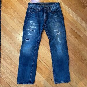 American Eagle Jeans Mens 31x32 Original Straight Distressed Dark Wash