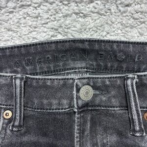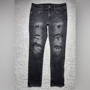 American Eagle Jeans Mens 32 x 30 Skinny Airflex 350 Black Distressed Holes