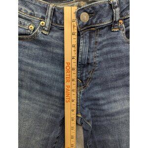 Details: Five-pocket design, zip fly with button closure, belt loops, contrast stitching, bootcut leg opening, classic American Eagle back pocket stitching.