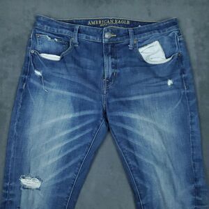 American Eagle Jeans Mens 34x32 Blue Distressed Extreme Flex 4 Slim Stretch Denim