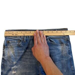 American Eagle Jeans Mens Size 28x32 Blue Jean Slim Tapered Leg Stretch Thrashed