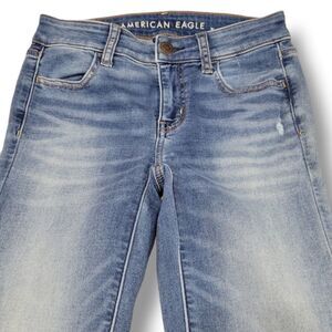 American Eagle Jeans Size 0 American Eagle Outfitters Super Stretch Jegging Blue Denim Pants Women's Skinny Jeans Low Rise Jeans Distressed Torn Ripped Faded Fading