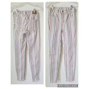 American Eagle Jeans Size 0 Women's Pants Hi Rise Purple Ivory Black Striped