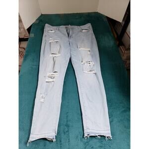 American Eagle Jeans Size 16 Womens Blue Stretch Distressed High Rise Jegging