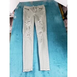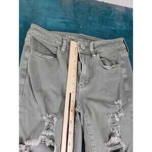 American Eagle Jeans Size 4 Long Womens Green Stretch Pants High Rise Jegging