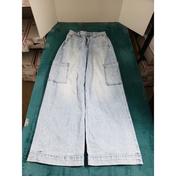 American Eagle Jeans Size 6 Womens Blue Stretch High Rise Baggy Wide Leg Cargo