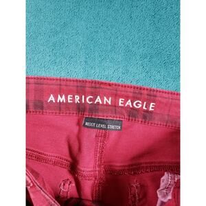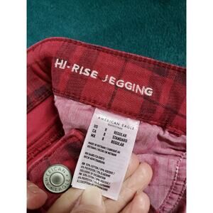 American Eagle Jeans Size 8 Womens Red Plaid Stretch Ladies High Rise Jegging