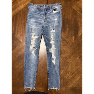 American Eagle Jeans Sz 10 Short Next Level Stretch Blue Super High Rise Jegging