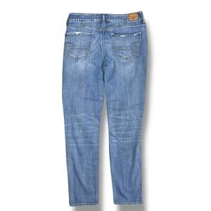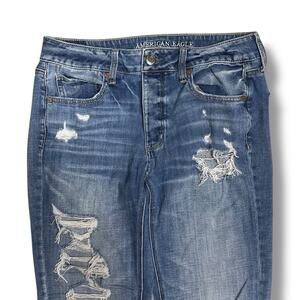 American Eagle Jeans Tomgirl Button Fly Distressed Medium Wash Womens 8 X Long