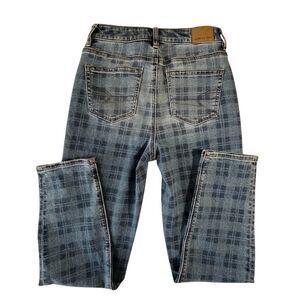 American Eagle Jeans Women 0 Blue Plaid Skinny Mid Rise Stretch (W22 L27)