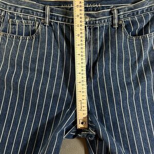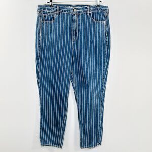 American Eagle Jeans Women 16 Long Blue Denim Medium Wash Striped Casual Academia Measures 34x29