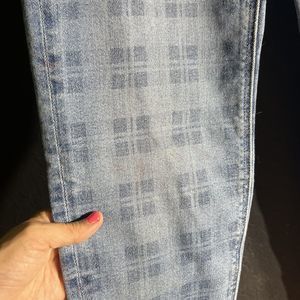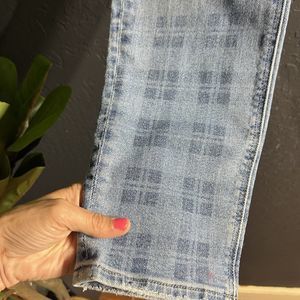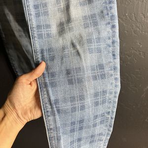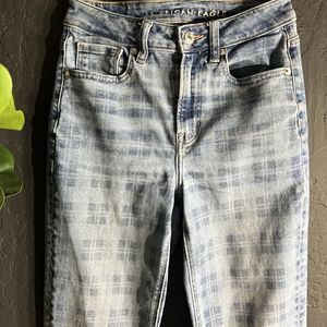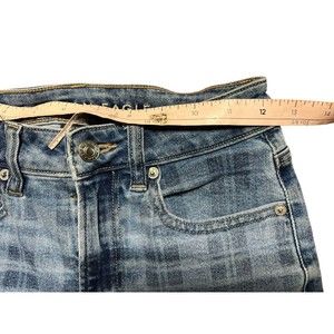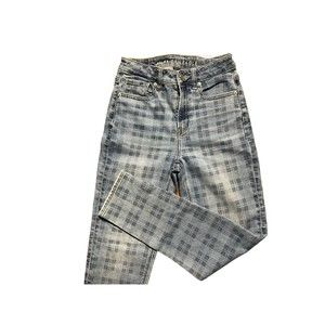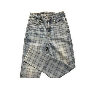 American Eagle Jeans Women Size 00R Blue Medium Wash Plaid Print Stretch 90s Y2K