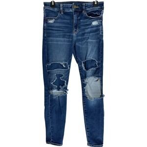 American Eagle Jeans Women Size 6 Short Blue Distressed Ripped High Rise Jegging