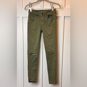 American Eagle Jeans Women size 0 Jegging Skinny Green Distressed Super Stretch