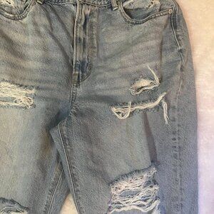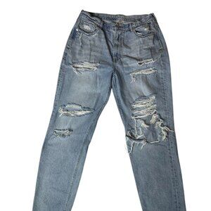 American Eagle Jeans Womens 12 Blue Mom Jeans Distressed Destroyed High Rise Y2K