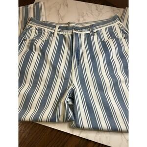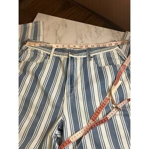 American Eagle Jeans Womens 14 Blue White Stripes High Rise Mom Sailorcore Beach