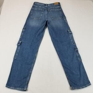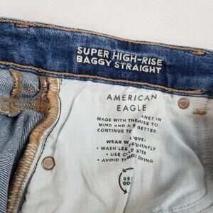 American Eagle Jeans Womens 2 Blue Super High-Rise Baggy Straight Cargo Stretch