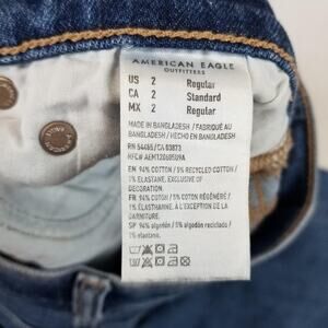 Branding Details: "AMERICAN EAGLE" interior waistband, leather back waist patch with American Eagle, small "AE" embroidery on seam