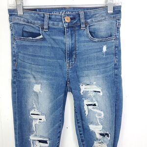 American Eagle Jeans Womens 2 High Rise Jeggings Distressed Ripped Light Wash