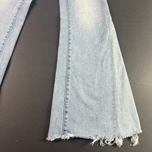 Style- Jeans Festival Flare Mid Rise Light Blue Faded Raw Hem Stretch Denim
