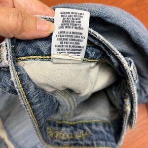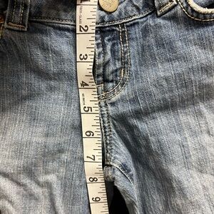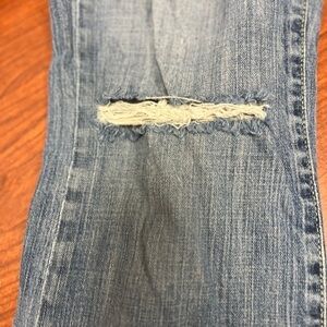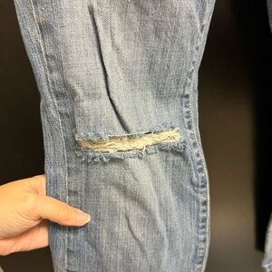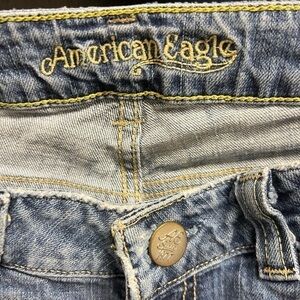 The jeans are machine washable and have a solid pattern with no vintage accents. They are branded with the American Eagle logo and have a low rise, making them a great choice for women who want to show off their fashion sense. With their distressed design and unique features, these jeans are a must-have for any fashion-forward woman.