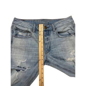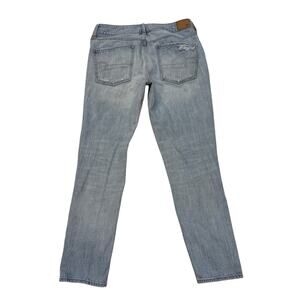 American Eagle Jeans Womens 6 Blue Tomgirl Button Fly Trashed Destroyed Grunge