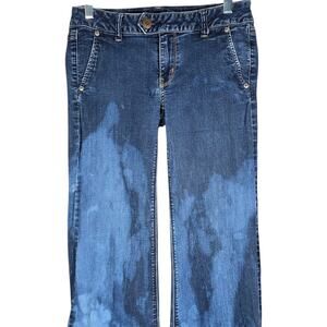 American Eagle Jeans Womens 6 Stretch Trousers Wide Leg Bleach Wash Low Rise