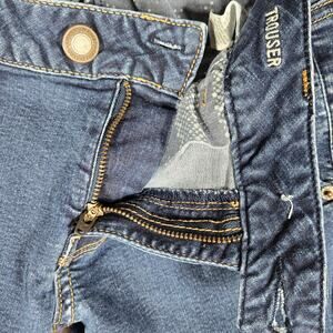 Good pre-owned condition with small stretch pucker below zipper shown close-up in last photo and missing inner button