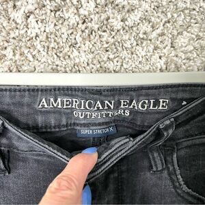Excellent used Condition Women’s American Eagle Outfitters Super Stretch Charcoal Black Super Hi-Rise Distressed Jegging Jeans in Size 8 Long