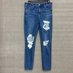 American Eagle Jeans Women's Size 10 Blue Distressed Stretch 27 in Inseam