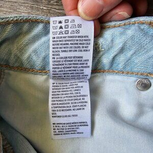 American Eagle Jeans Womens Size 10 Button Fly Light Acid Wash Distressed Angled