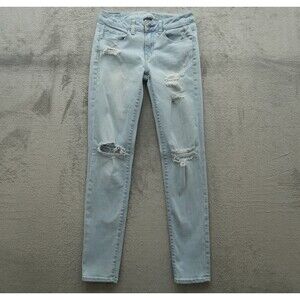 American Eagle Jeans Women's Size 4 Blue Low-Rise Skinny Denim Pants 29" Inseam Distressed