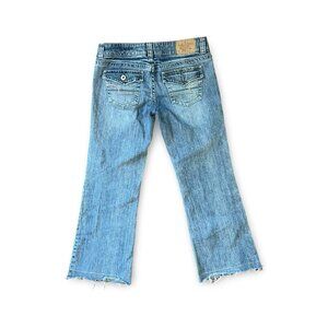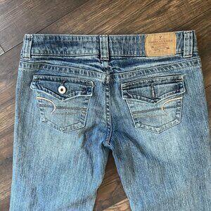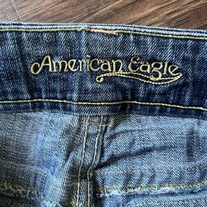 American Eagle Jeans Womens Wide Leg Raw Hem Denim Pockets Size 8