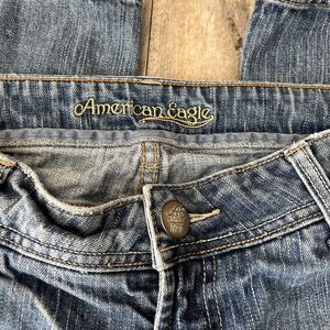 American Eagle Jeans Y2K Vintage Women's 10 Short Lowrise Blue — Step into early 2000s style with these classic American Eagle Y2K jeans! Featuring a flattering low-rise fit in a timeless blue wash, these women’s size 10 short jeans give off the perfect vintage vibe. Soft, comfy, and effortlessly cool—ideal for casual everyday wear or recreating that iconic Y2K look.