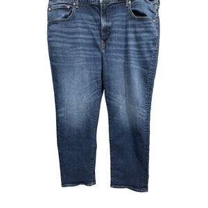 Upgrade your wardrobe with these American Eagle Men’s Athletic Fit Jeans, size 44x32. Designed with a roomy thigh and straight-leg cut, they offer all-day comfort and a clean, casual look in a versatile mid-blue wash.